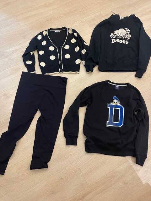 物品名稱:二手女性針織衫、二手帽t、全新運動褲及二手大學t