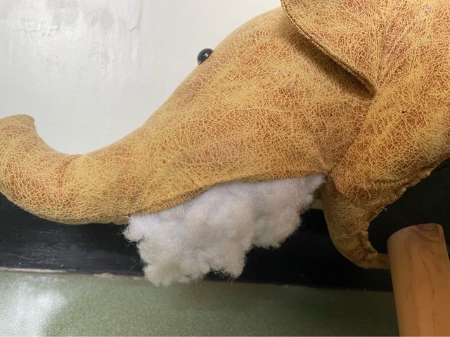 大象椅凳 可以正常坐 但是鼻子下方裂開棉花跑出來 看有沒有縫紉好手可以回春的
