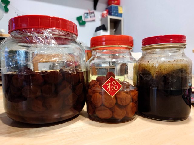 糖跟鹽的大約兩年,紫蘇梅已經是陳年不確定時間~