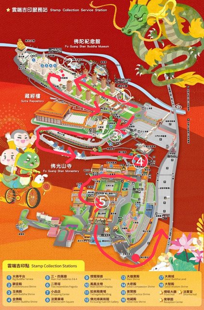 一進來佛陀紀念館後,建議直奔②的佛光大佛