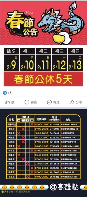 → a13471 : 原po不是貼高雄點的圖問休到初四的消息是哪來的? 02/13 17:00