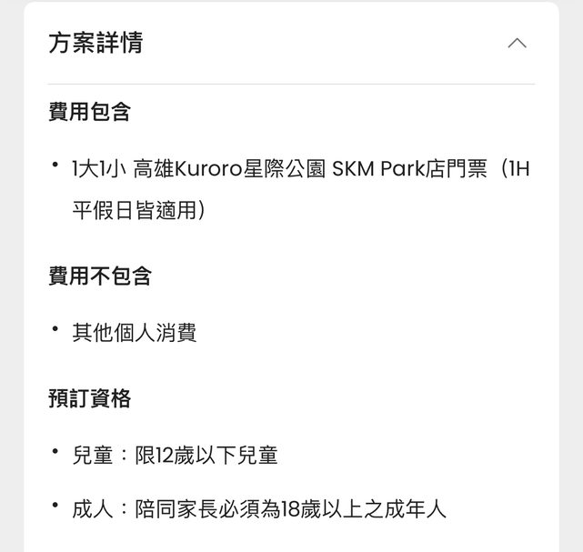 物品名稱:1大1小 高雄Kuroro星際公園 SKM Park店門票(1H ) ,僅限2/16號當天使用