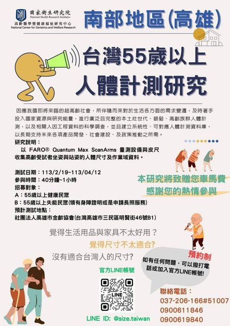 標題[活動] 55歲以上人體計測研究