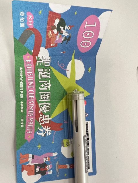 物品名稱:聖誕券一張,可至特約店家換100元的東西,期限到2/29