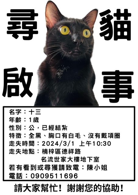 推 premh104 : 雙黑喵喵快回家 03/03 09:40