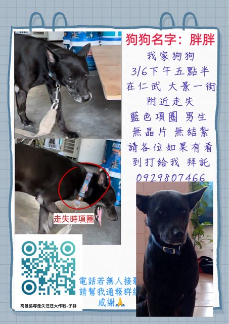 標題協尋 3/6大景一街走失狗狗