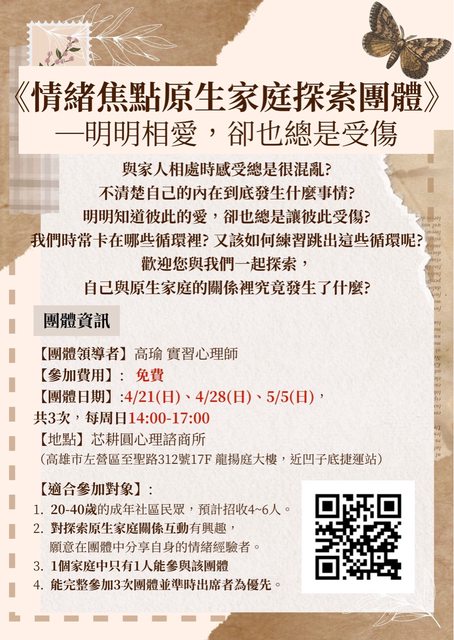 標題《情報》情緒焦點原生家庭探索團體 開始招募囉!