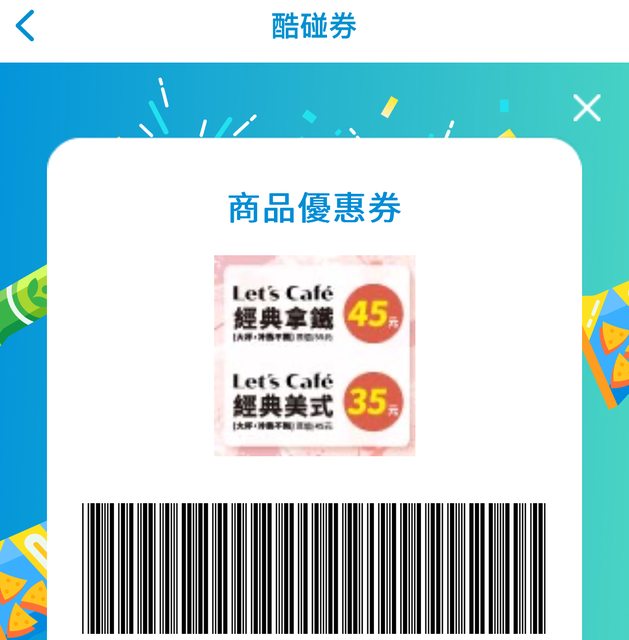 物品名稱:全家 美式35/拿鐵45 酷碰券