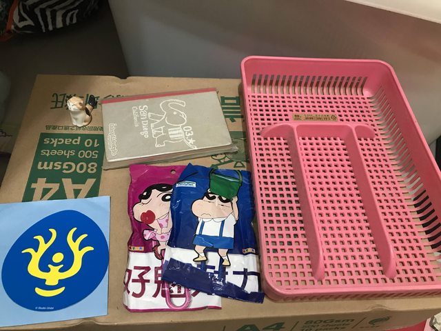 貼紙、小筆記本(內頁空白無線)、小新夾子、塑膠籃、筷架