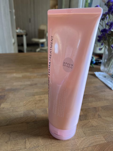 4.熊野油脂(粉紅瓶)染燙損傷髮用髮膜,容量如圖