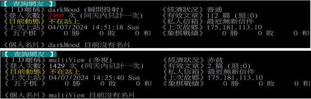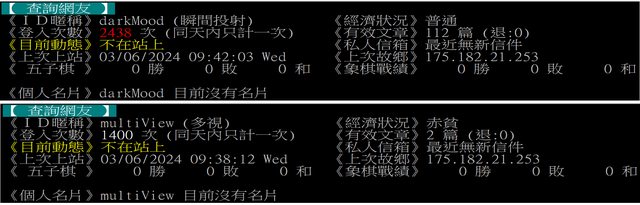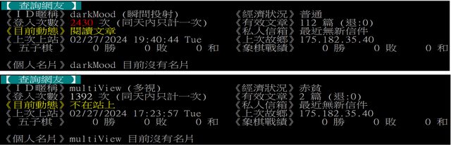 為darkMood之分身帳號,以下檢附三組站方查詢IP紀錄