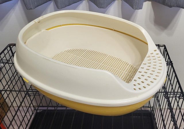 平常都當成喵星人的廁所,用來放貓沙盆,附有底盤和地墊,皆已清潔乾淨,籠子應該是