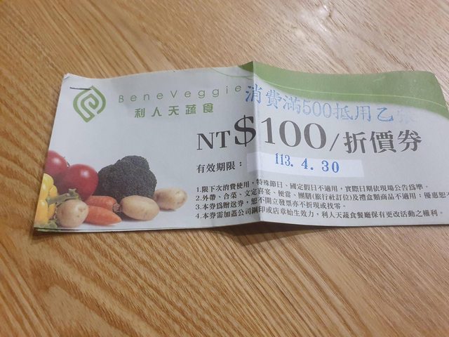 物品名稱:利人天蔬食折價券兩張