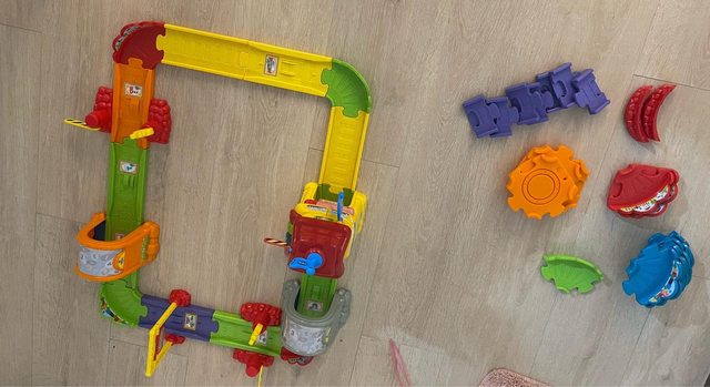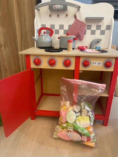 物品名稱:木製廚房(附玩具水果)、火車軌道(沒有附火車)