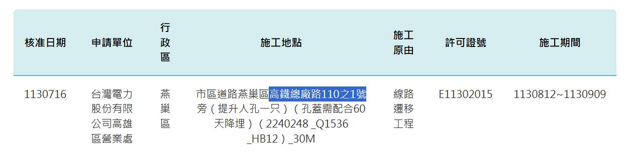 因查詢工程網站與挖管中心都沒有相關資訊,