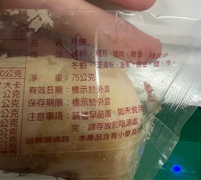 物品名稱:台中太陽堂月餅三顆(應該是綠豆椪+豬肉口味)