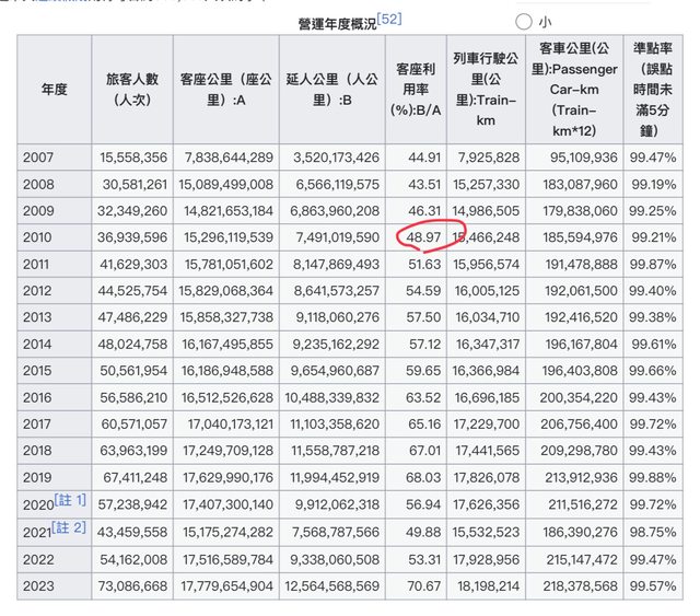 以高鐵來說,從維基百科統計看往年高鐵運量,當時毛發否定高鐵台鐵共軌進高雄公文的