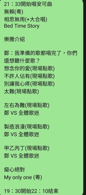 基哥:只要唱到無賴,我就知道時間超過了,但是沒關係,這裡不是台北是高雄。 基哥:我準備的歌都唱完了,你們想要聽什麼(歌迷現場點歌)。 https://i.imgur.com/Do2mfZB.jpeg
