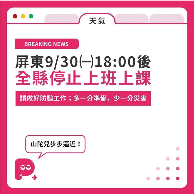 k6416337 : 明天屏東全縣停班課 09/30 18:19