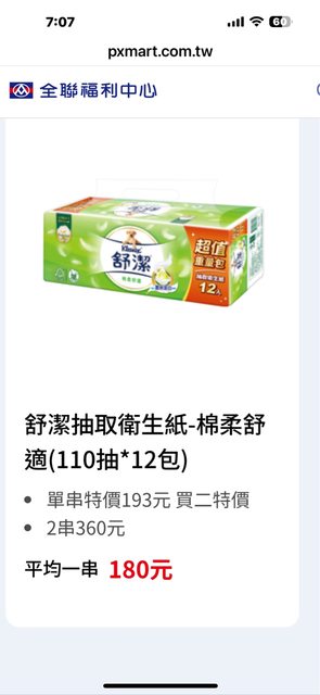 欲換物品:舒潔抽取衛生紙—柔棉舒適「兩串」