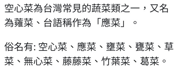 推 tchialen : 蕹菜 音同昏庸的ㄩㄥ 10/20 08:51