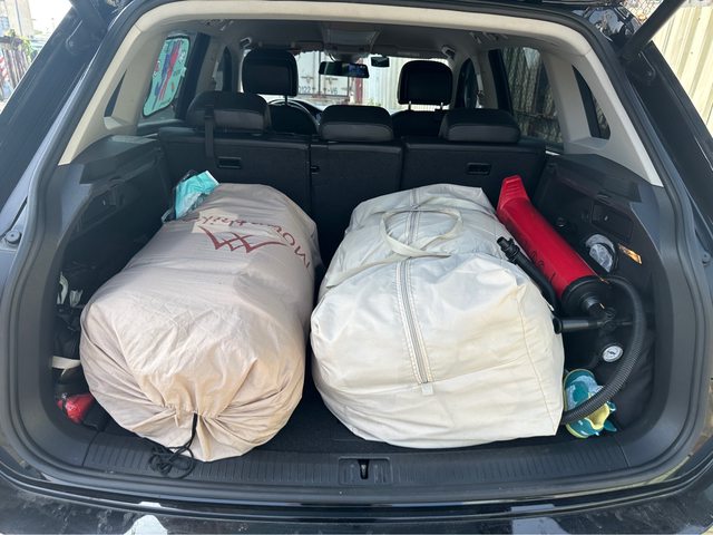 標題[交易]露營充氣帳篷、奶酪雙人床墊