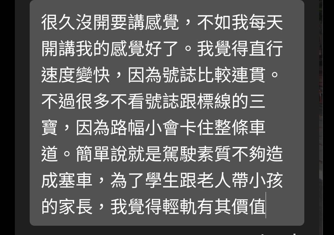 → cocoi : 火車沒走時大家可以走,綠燈沒輕軌你能過?輕軌比 10/22 22:47