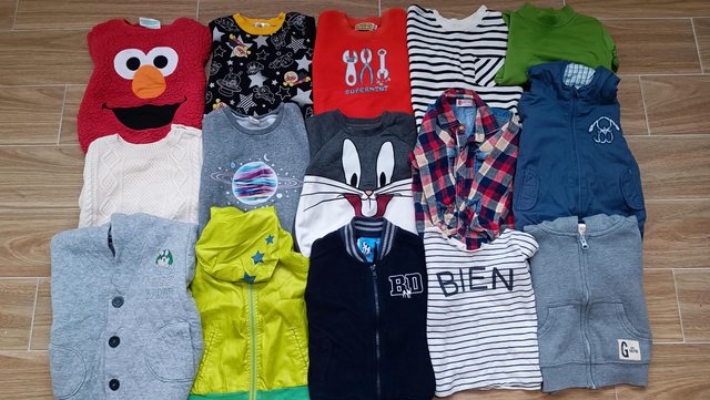 物品狀況:正常使用痕跡,內含Gap毛衣、厚外套、芝麻街、麵包超人、天鵝牌內搭(加絨