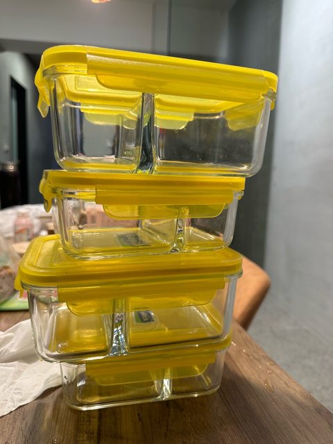 物品名稱:1.少用的分隔玻璃保鮮盒4個2.文青便當盒。