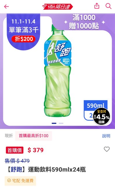 欲換物品:舒跑運動飲料590ml共15瓶