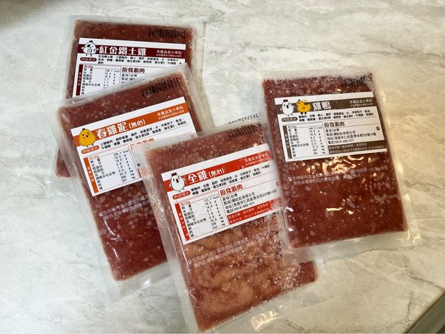 物品名稱:原食源肉(全雞+雞鴨+春雞泥+紅金鑽100g各1包)4包共400g