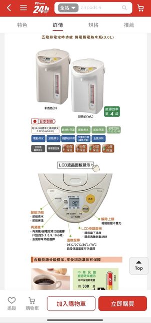 物品名稱:虎牌3公升電熱水瓶日本製(型號PDR-S30R)