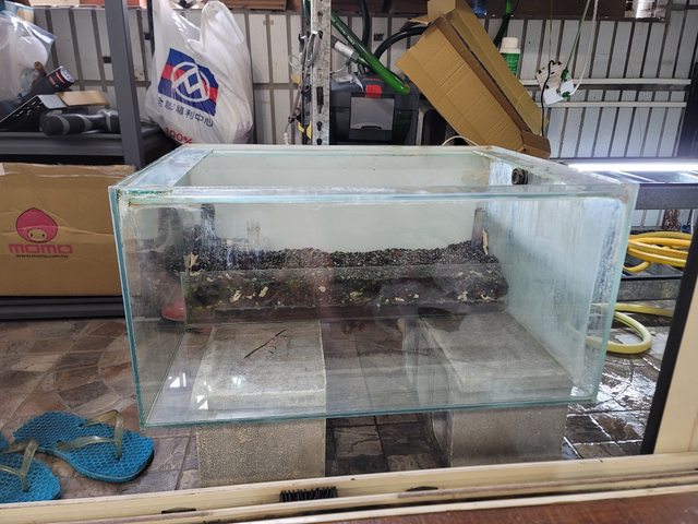 養魚需常換水有快排(照片3),已做好水塔頭及排水,可以送您兩塊保龍龍磚墊高很方便