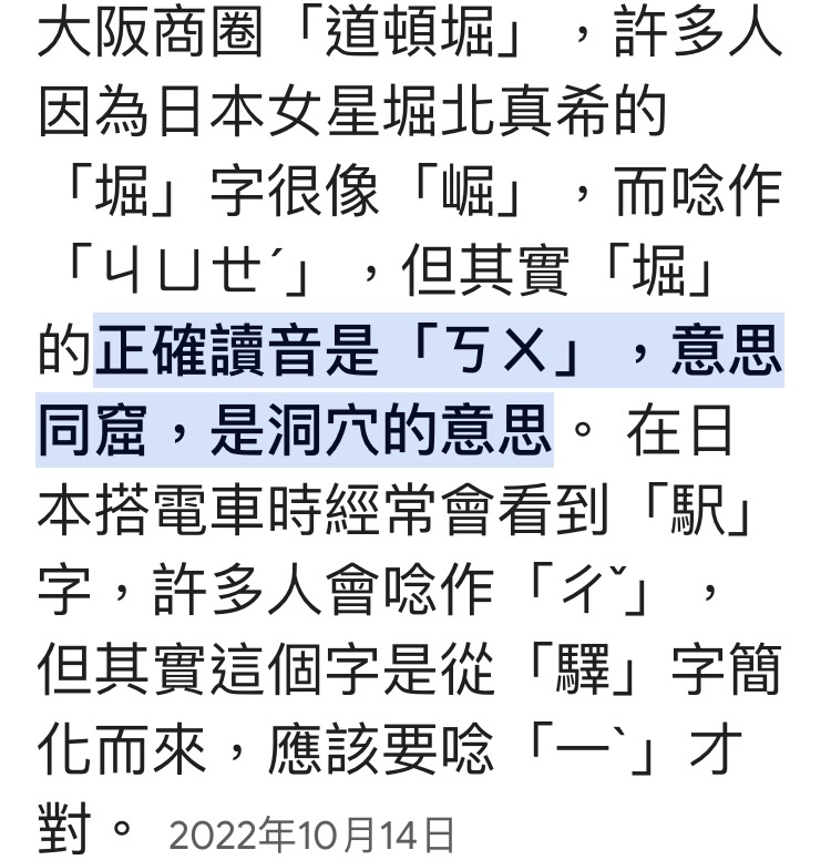 → hantulee: 正確字‘堀’,民眾誤以為是‘崛’字. 11/22 12:01