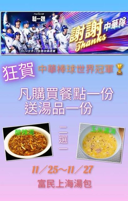 20、11/25-27 富民上海湯包 買餐點送湯品