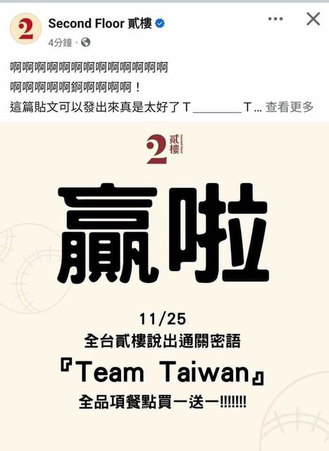 4、11/25 貳樓 全品項買一送一