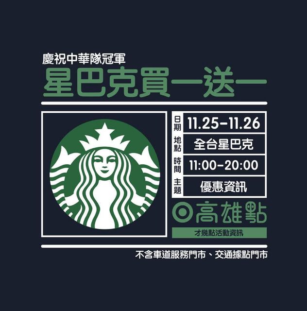 2、11/25、26 星巴克買一送一