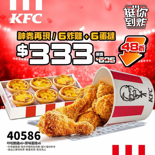 喀啦脆雞x6+原味蛋塔x6 48折=333元