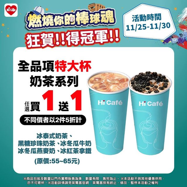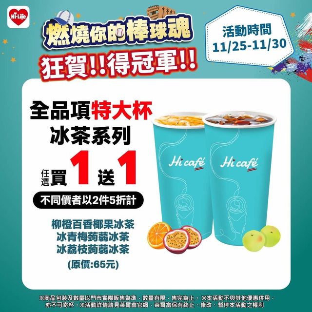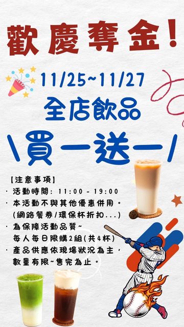11/25-27 日夕茶飲 全店飲料買一送一