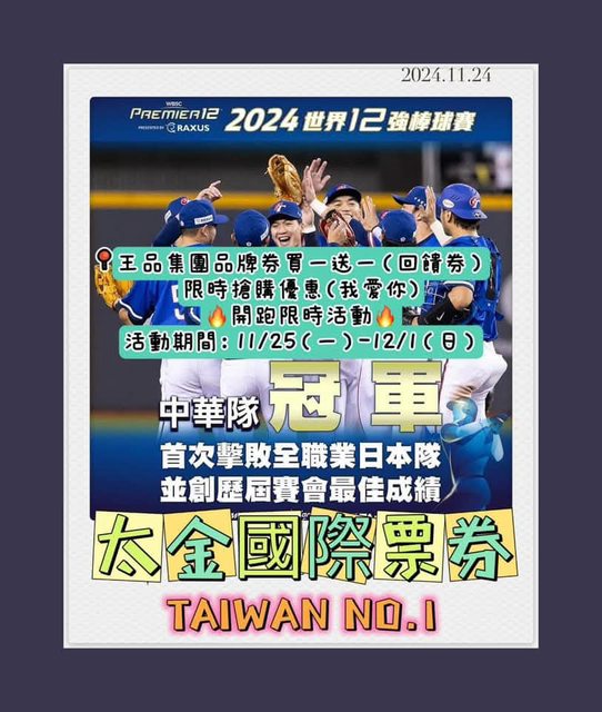 恭喜台灣棒球奪得12強世界冠軍 相信大家一定都超爽的,各地店家也都紛紛 祭出優惠