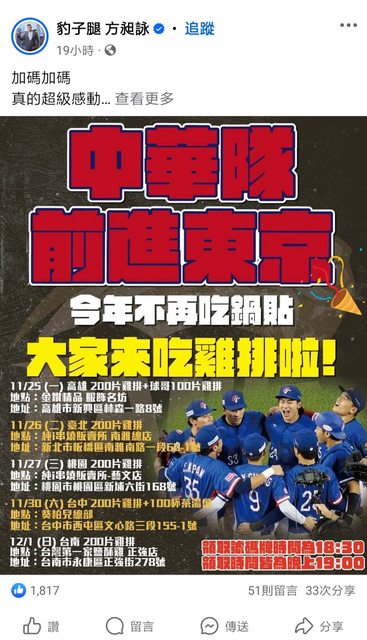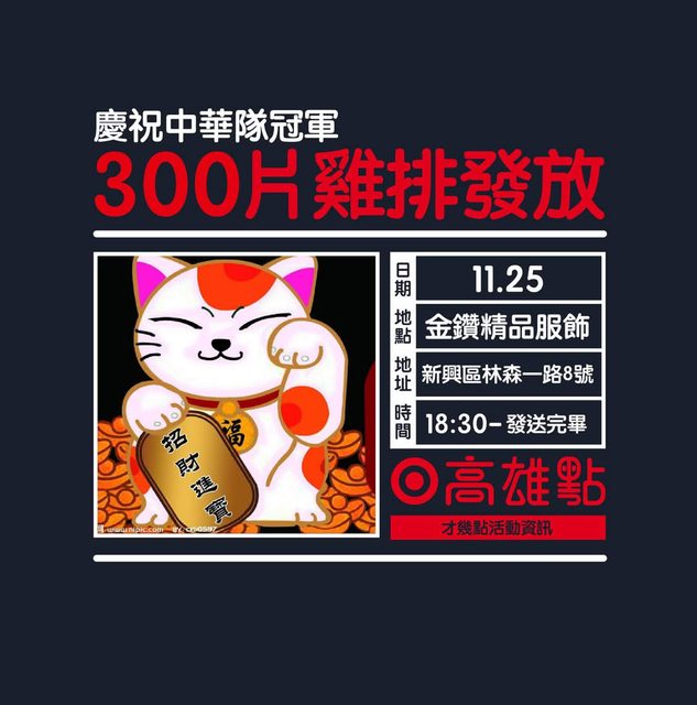 1、11/25 方昶詠加碼高雄200片+球哥100片雞排