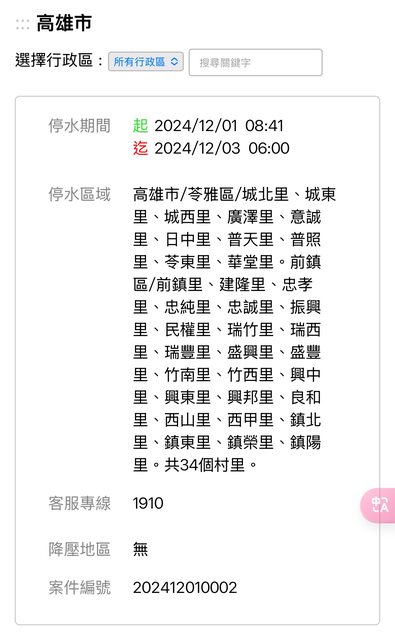 推 lav1147: 又延了,延到明天0點,苓雅區那邊的人也太慘停水近4天12/03 13:09