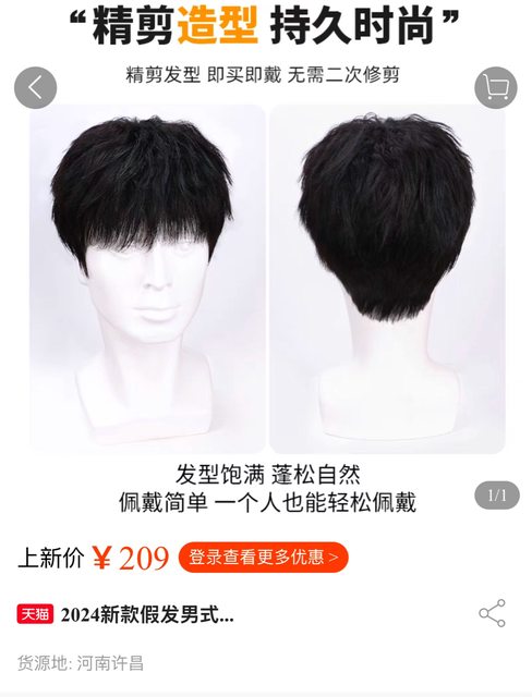 2.男用假髮,當初頭髮剪壞買來暫用的,還很新,收在盒子裡,配件都還在。