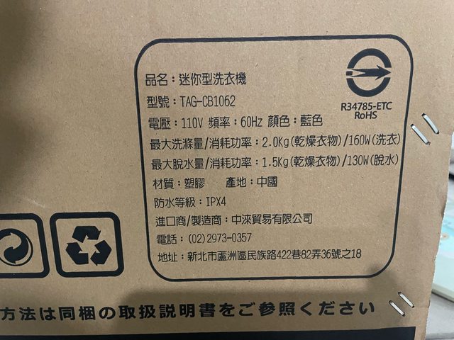 物品名稱:迷你雙槽洗衣機(TAG-CB1062)