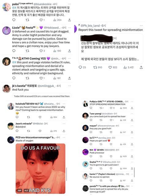 湧入韓文、英文等各種語言的辱罵,說推主是說謊精,並威脅推主會被Big Hit告、會被