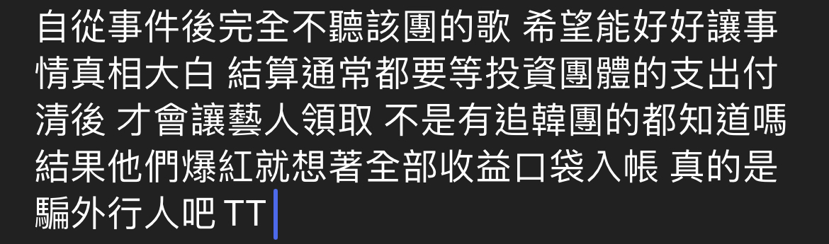 → mbcz900924: ,要等音源網站和公司結算 223.138.106.50 08/23 17:41