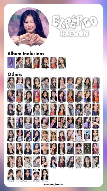 : expergo(主打love me like this):81張特典卡(+7專卡) : https://i.imgur.com/JMCUOFe.jpg