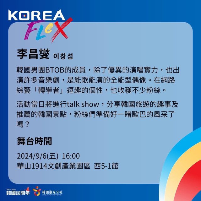 標題[情報] 李昌燮出席韓國文化觀光大展 9/6華山
