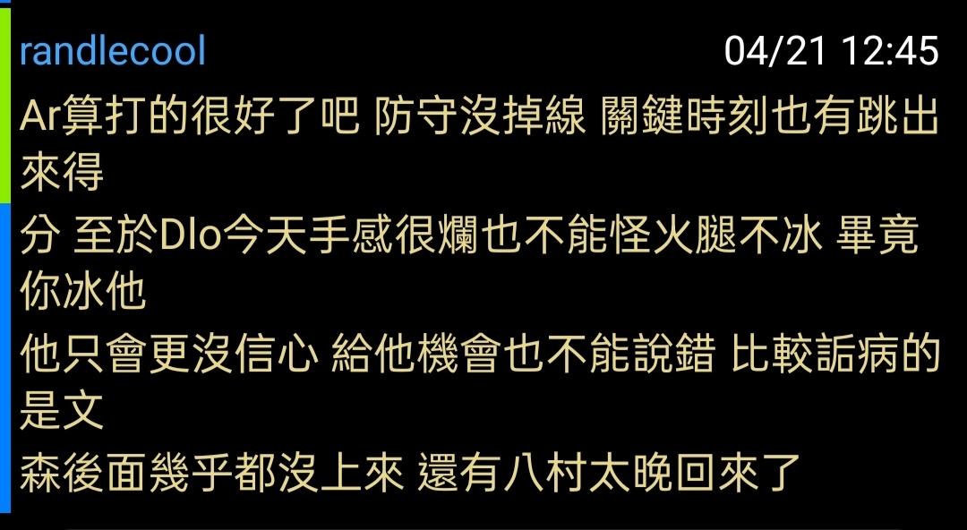 推 bm1041644: 今天問題是Dlo投不進 你把AR下替補 他配丁丁或文森一 04/21 11:34