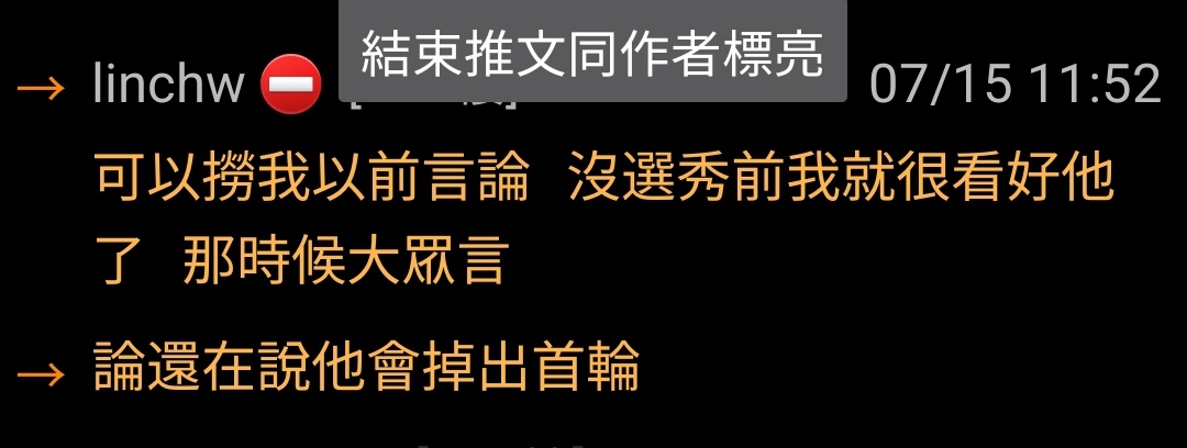 → mjkblbjboth: 心態就不對啊 才第一輪 還沒贏就在嘻皮笑臉07/13 22:56